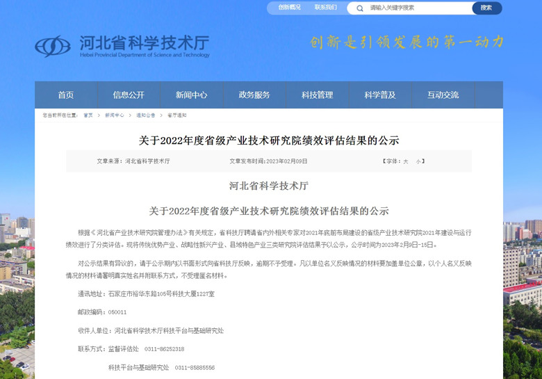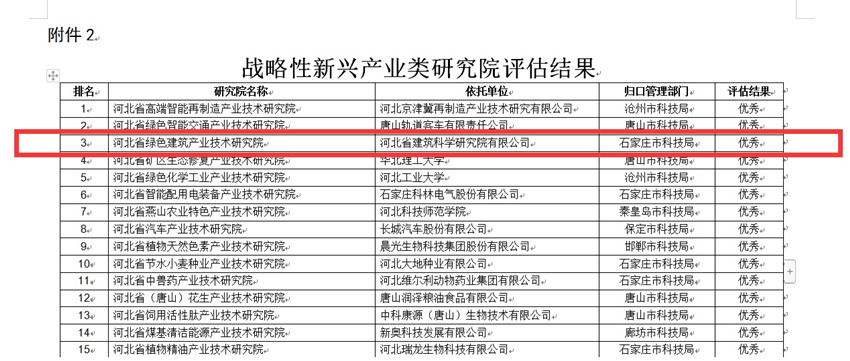 202329日,河北省科技廳發(fā)布了關(guān)于2022年度省級(jí)產(chǎn)業(yè)技術(shù)研究院績(jī)效評(píng)估結(jié)果的公示。經(jīng)評(píng)估,我公司建設(shè)運(yùn)行的“河北省綠色建筑產(chǎn)業(yè)技術(shù)研究院”榮獲戰(zhàn)略性新興產(chǎn)業(yè)類(lèi)研究院優(yōu)秀等次。